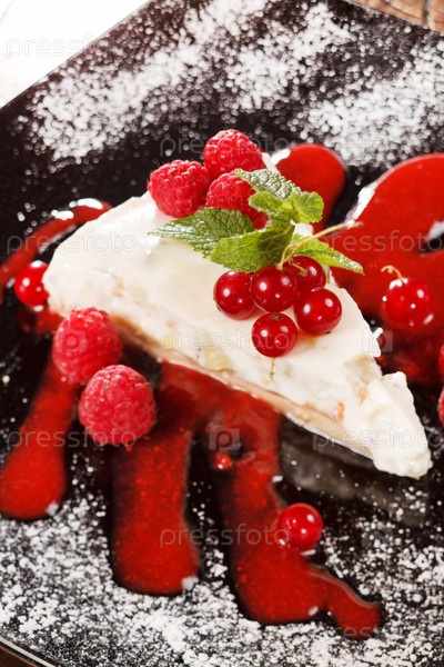 Сырный торт с красной смородиной и мятой