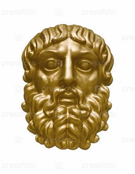 Декоративная золотая голова древнего бога изолирована на белом фоне