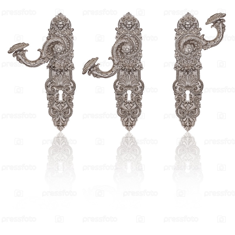 Серебряная дверная ручка изолирована на белом фоне