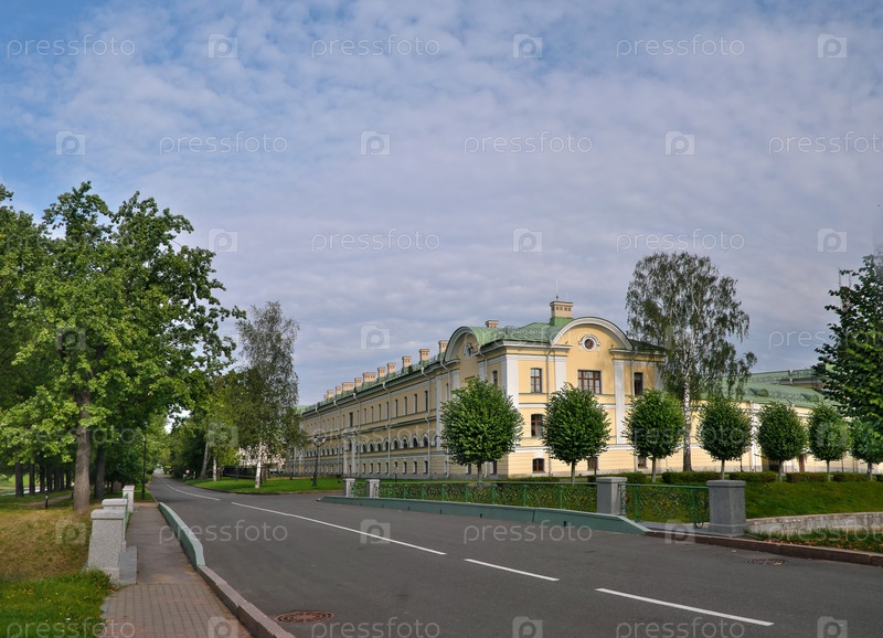 Стабильное здание Константиновского дворца в Стрельне, вид на летний день
