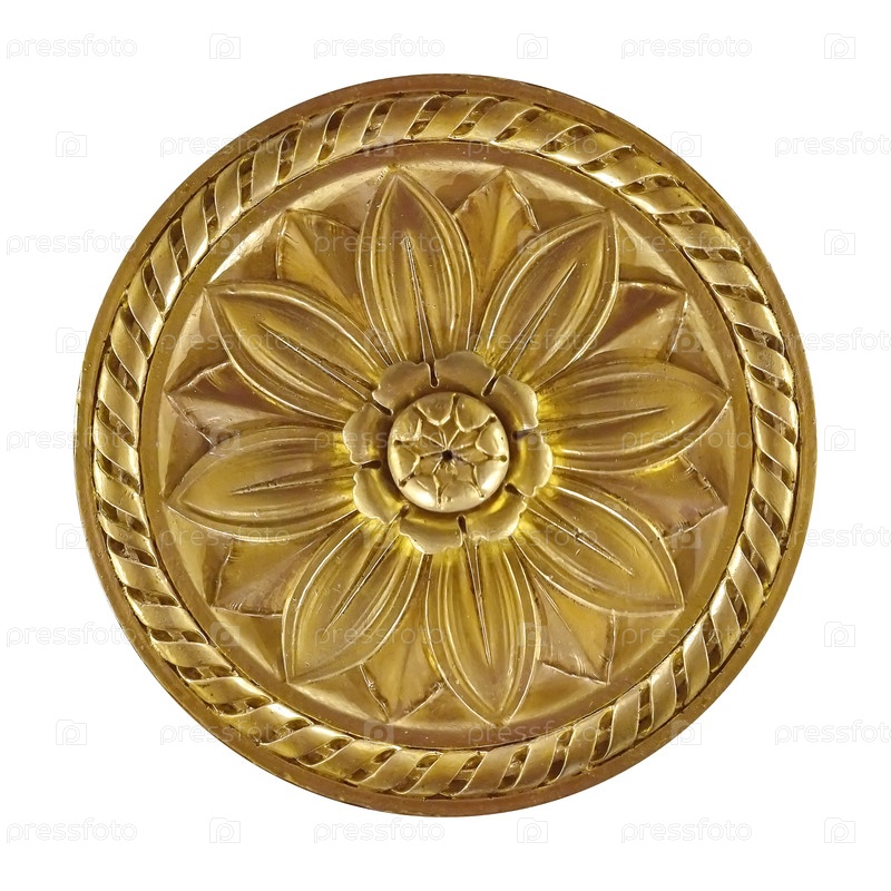 Золотой декоративный элемент с цветочным узором, выделенным на белом фоне