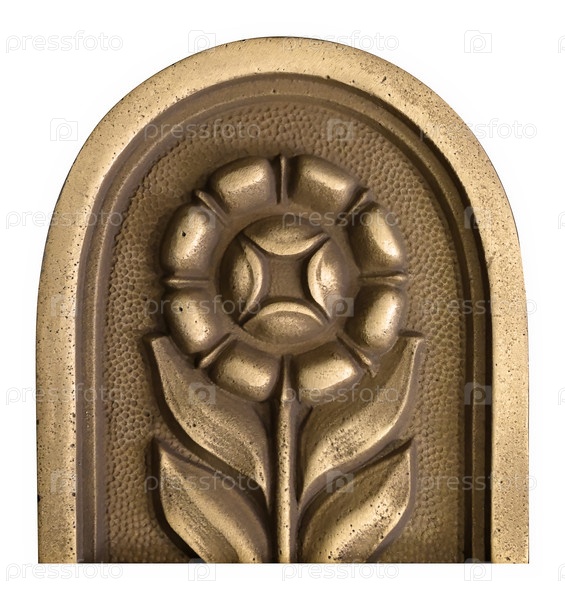 Золотой декоративный элемент в форме цветка, выделенного на белом фоне
