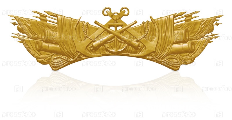 Золотой декоративный архитектурный элемент с морскими символами, выделенными на белом фоне