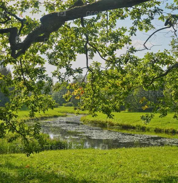 Ландшафт с рекой Славянкой в Государственном музее-заповеднике 'Павловск'.Летний день в Императорском парке