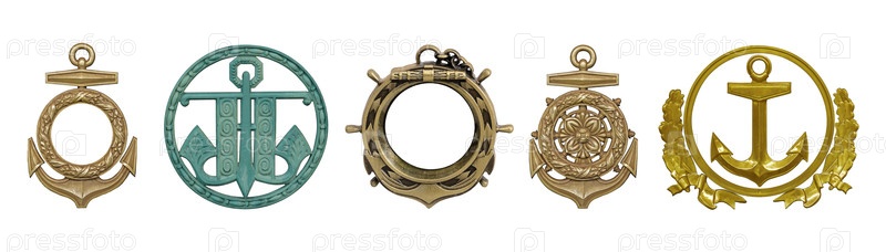 Набор декоративных якорей изолирован на белом фоне