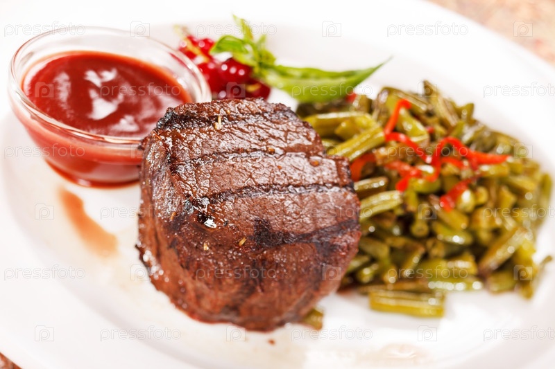 Стейк на гриле с овощами