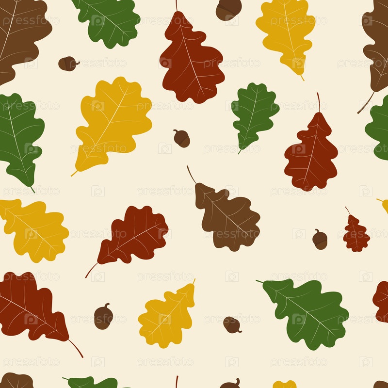Векторный бесшовный рисунок с яркими осенними листьями дуба и желудицами