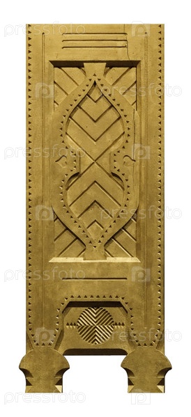 Золотой декоративный элемент с цветочным узором выделен на белом фоне