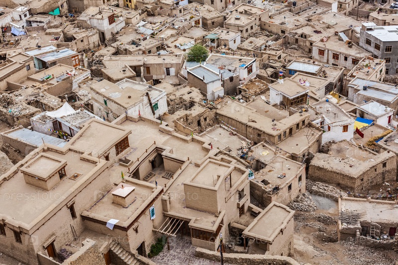 Вид из воздуха на город Лех сверху.Ладак, Индия