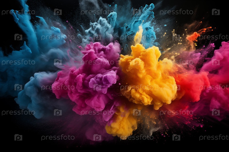 Von Holey - яркий и красочный взрыв пылевого дыма на черном фоне