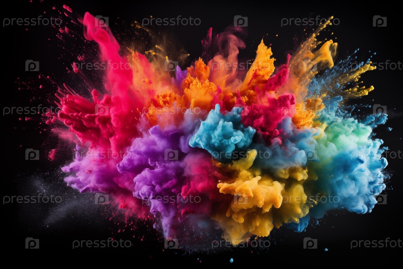 Von Holey - яркий и красочный взрыв пылевого дыма на черном фоне