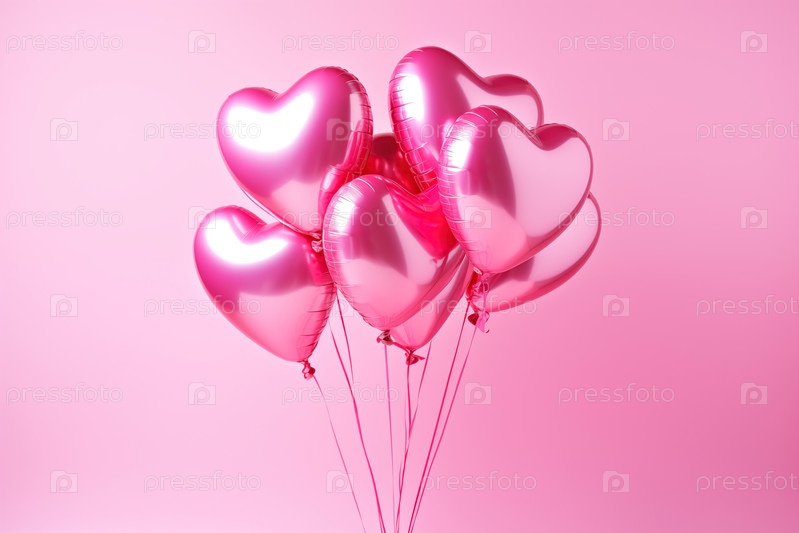 Розовые шарики сердца на мягком розовом фоне