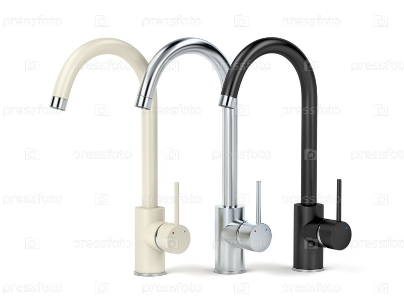 Бежевые, серебряные и черные кухонные краны
