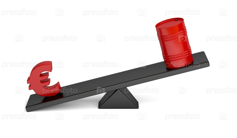 Знак евро и баррель нефти на качелях