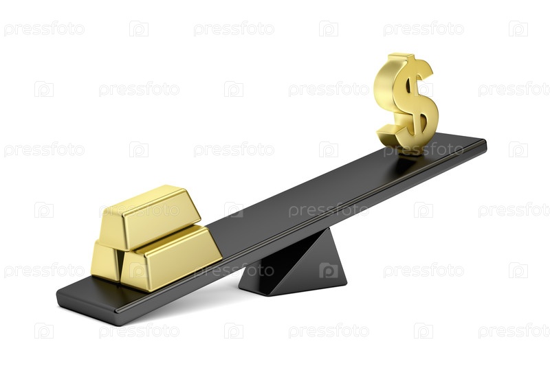 Золотые слитки и знак доллара на пиле