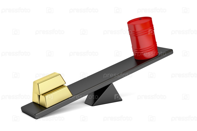 Золотые слитки и барабан масла на пиле