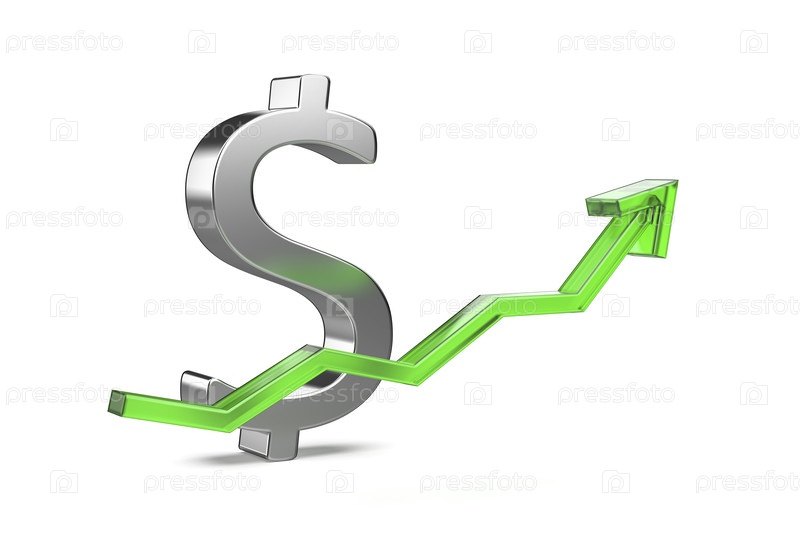 Символ доллара США с зеленой стрелкой