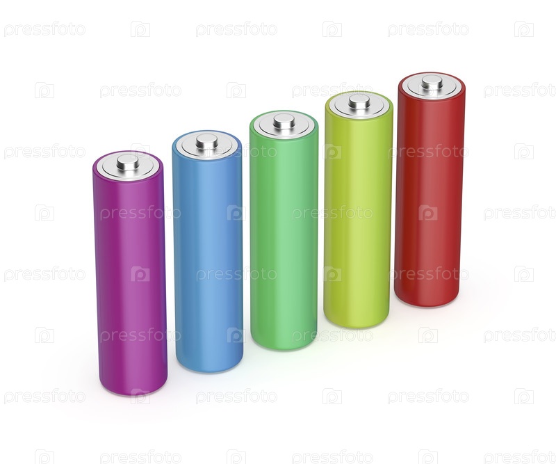 Рядом с ней пять аккумуляторов AA размерами в различных цветах
