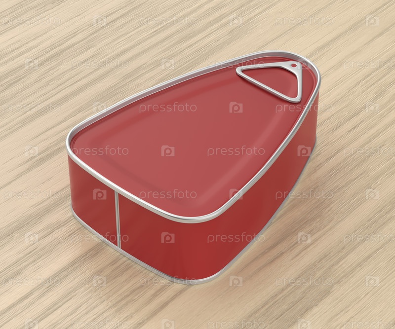 Красная оловянная банка с ветчиной, рыбой или другой едой