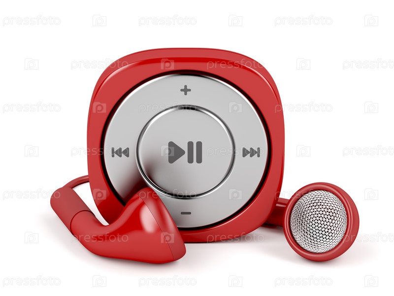 Красный MP3-плеер и проводные наушники