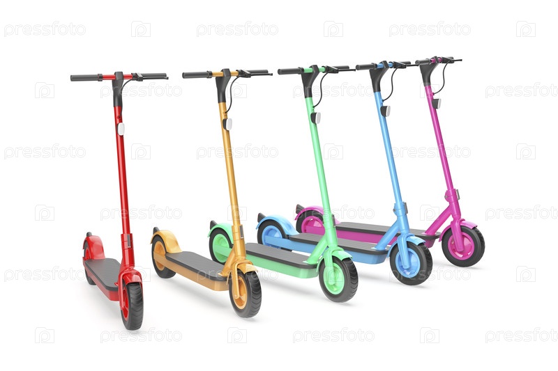 Роу с пятью электрическими скутерами разных цветов