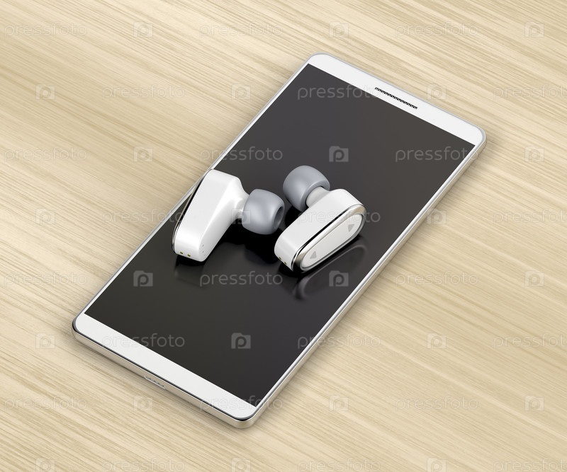 Беспроводные наушники в ухе и смартфон