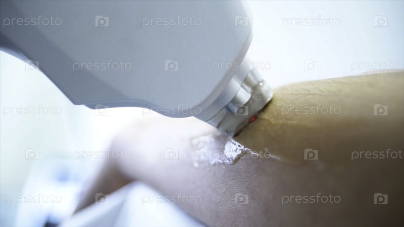 Закройте эпиляцию в салоне красоты. лазерная эпиляция в салоне красоты. женщина получает лазерную эпиляцию. без лица. лазерная эпиляция. лазерная процедура в косметическом салоне