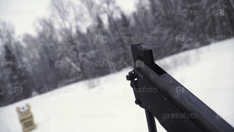 Стрелок в камуфляже наносит удар по цели из винтовки с оптическим прицелом, фокусируется на оружии