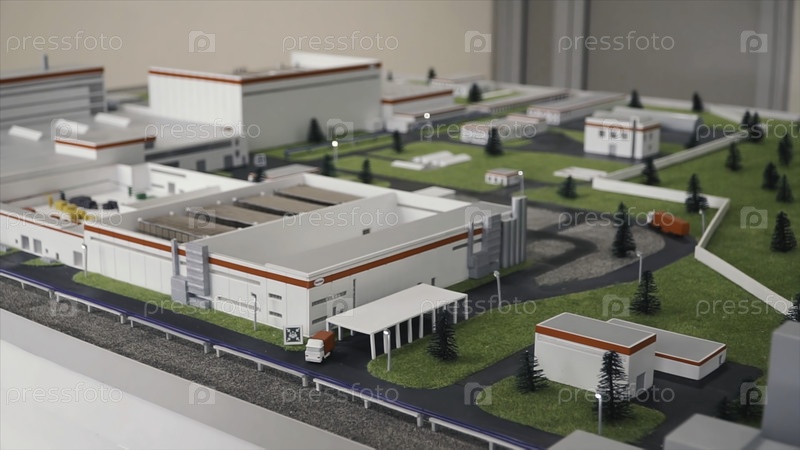 Миниатюрная модель растения. Клип. Небольшое здание на игрушечной модели