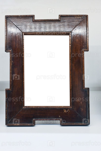 Пустой квадратный каркас на белом деревянном столе в комнате, пространство для текста