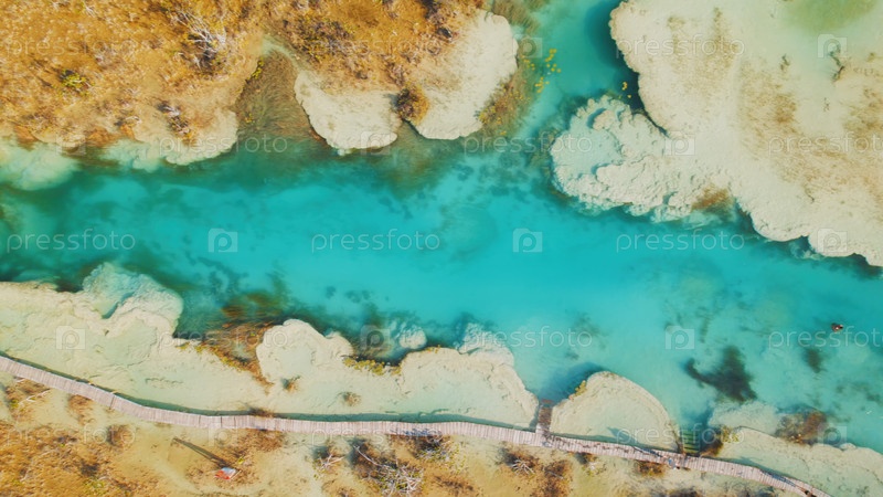Люди купаются в чистой голубой воде в мексиканской лагуне Бакалар