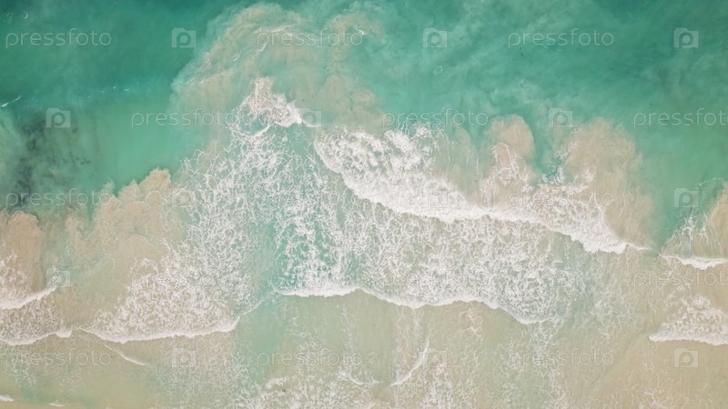 Вид с воздуха морских волн, прокатывающихся на тропический песчаный пляж с бирюзовой водой