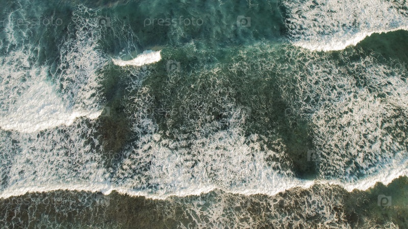 Вид с воздуха волн, прокатывающихся через коралловый риф под чистой тропической водой
