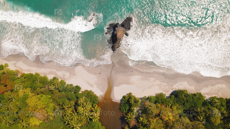 Вид с воздуха пляжа Мануэля Антонио Эспадилья в Коста-Рике с океанскими волнами