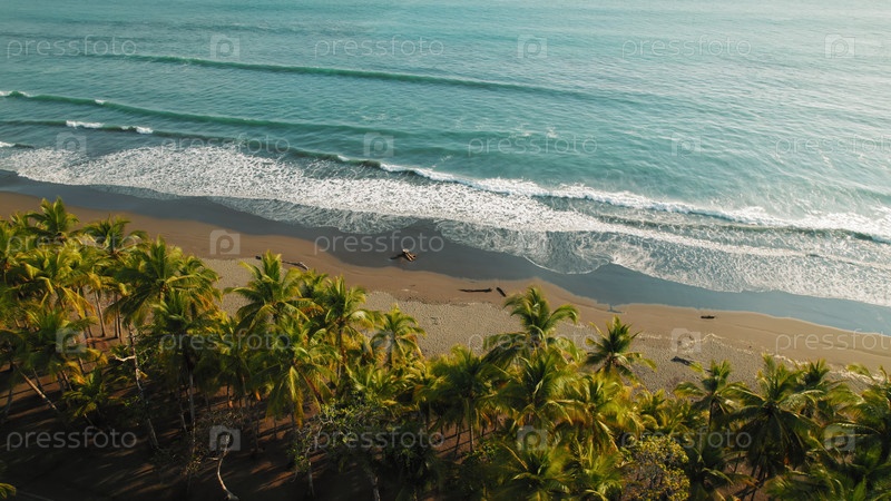 Вид с воздуха на тропический пальмовый пляж и бирюзовые волны океана