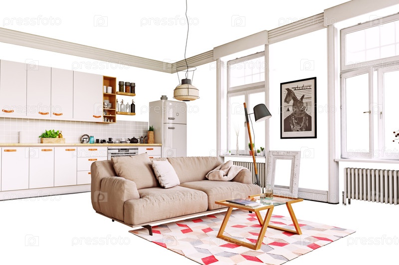 Изолированная домашняя мебель и декорация Концепция 3D иллюстрации