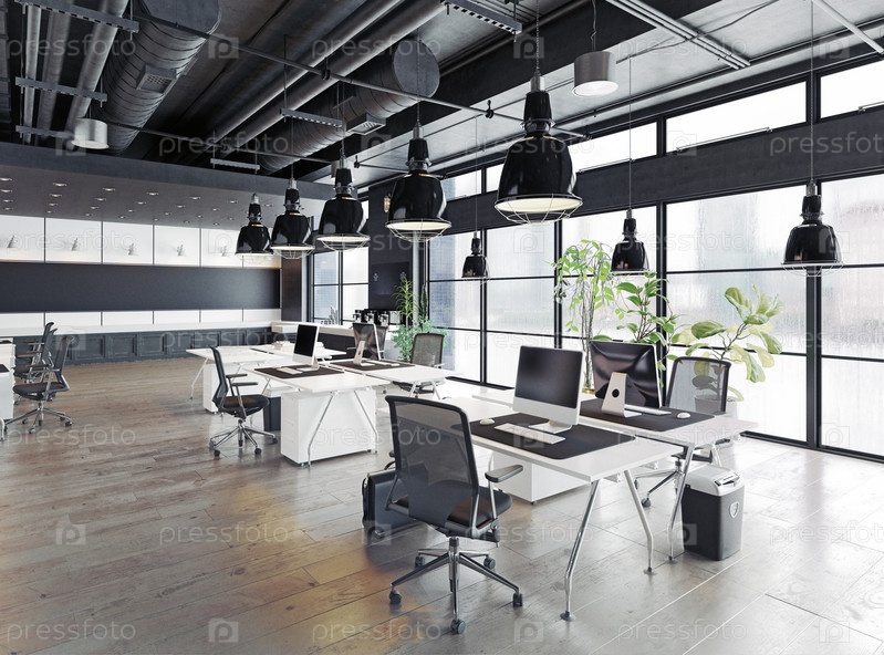 Современный уютный офисный интерьер лофта. 3d rendering
