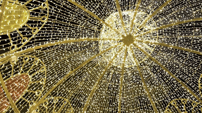 Много лампочек висят в качестве декоративной гирлянды на фестивале на фоне темного ночного неба, красивый дизайн световой струны