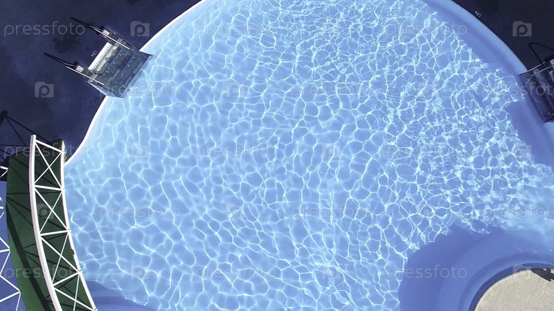 Фон пластинки воды в бассейне и деревянный пол. Бассейн с видом сверху