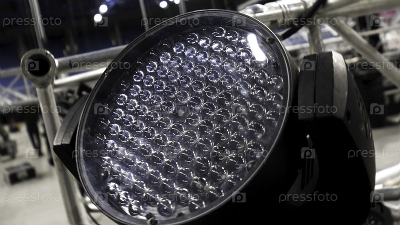 Закрытие прожектора, элемент освещения сцены, концепция профессионального оборудования.Осветительное устройство выключается во время установки сцены