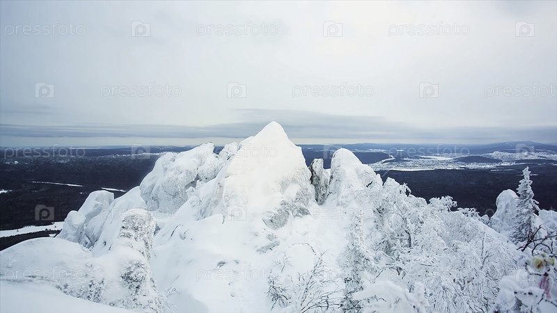 Большой панорамный вид на заснеженную массивную гору с горной скалой. ландшафт и прекрасные пейзажи. зимний пейзаж в горной долине со снегом. горы со снегом и синее небо