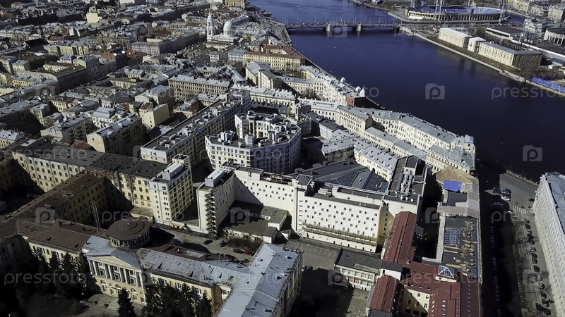Вид на реку Неву и центральные регионы Санкт-Петербурга, Россия. резервные кадры. воздушный вид летнего города с красивыми домами и голубой поверхностью воды, концепция архитектуры