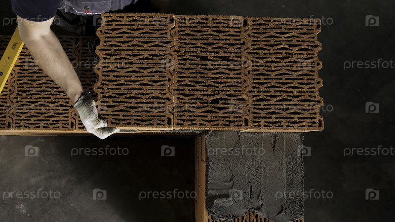 Масон делает стену из миномета и кирпича. резервные кадры. Покрыть руки промышленных рабочих, чтобы построить стены нового дома