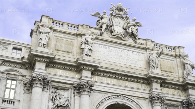 Скульптуры и древние художественные рельефы на воротах. Достопримечательности и памятники средневековой Европы. Вход с большими вратами католического собора со статуей. стиль барокко и эпохи Возрождения
