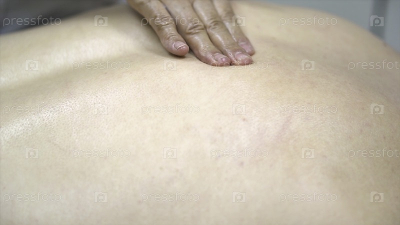 Закройте руки физиотерапевта, возвращая массаж лежащему пациенту, медицинское обслуживание, концепции расслабления