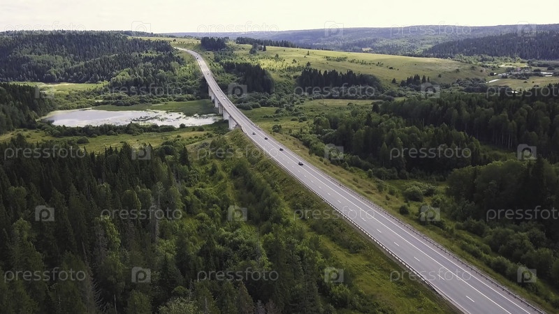 Вид с воздуха горной дороги, проходящей через лесный пейзаж. Красивый ландшафт с горной дорогой с вождением автомобиля и лесном фоном. Закат в горах