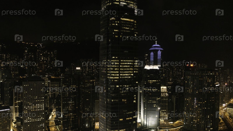 Вид на небоскребы в большом городе ночью.Сток.Отличный вид на город ночью