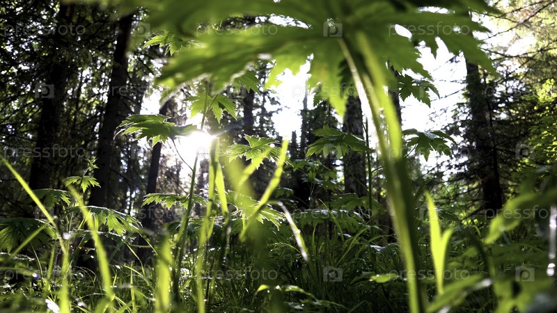 Покрывайте зеленые растения небольшими листьями от яркого солнечного света, сияющего через деревья