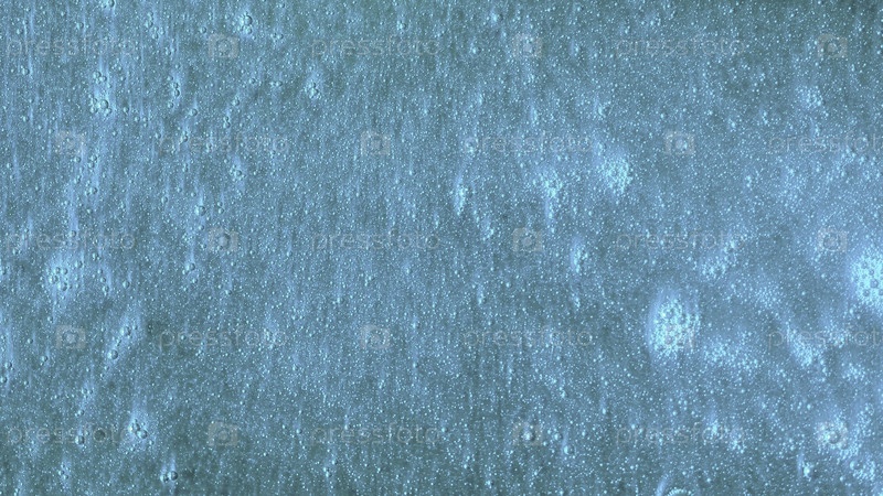 Яркий бирюзовый фон с медленно движущимися пузырями. Красивая голубая поверхность со светящимися частицами