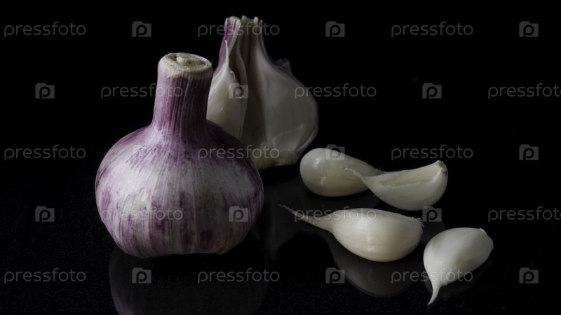 Лук и чеснок на черном фоне